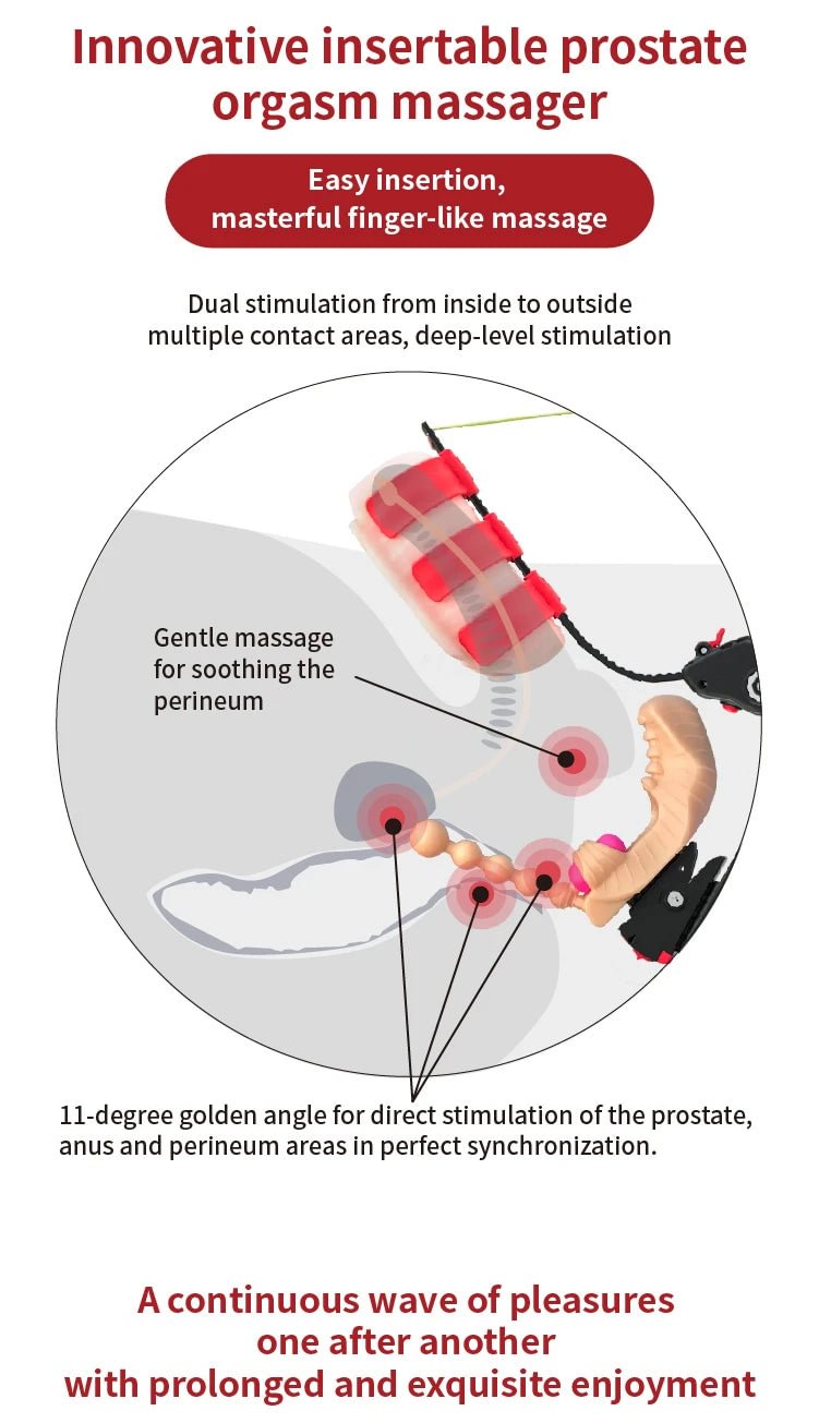 Triple Stimulation: Combines stimulation for the penis, perineum, and prostate, delivering a multi-area pleasure experience simultaneously.