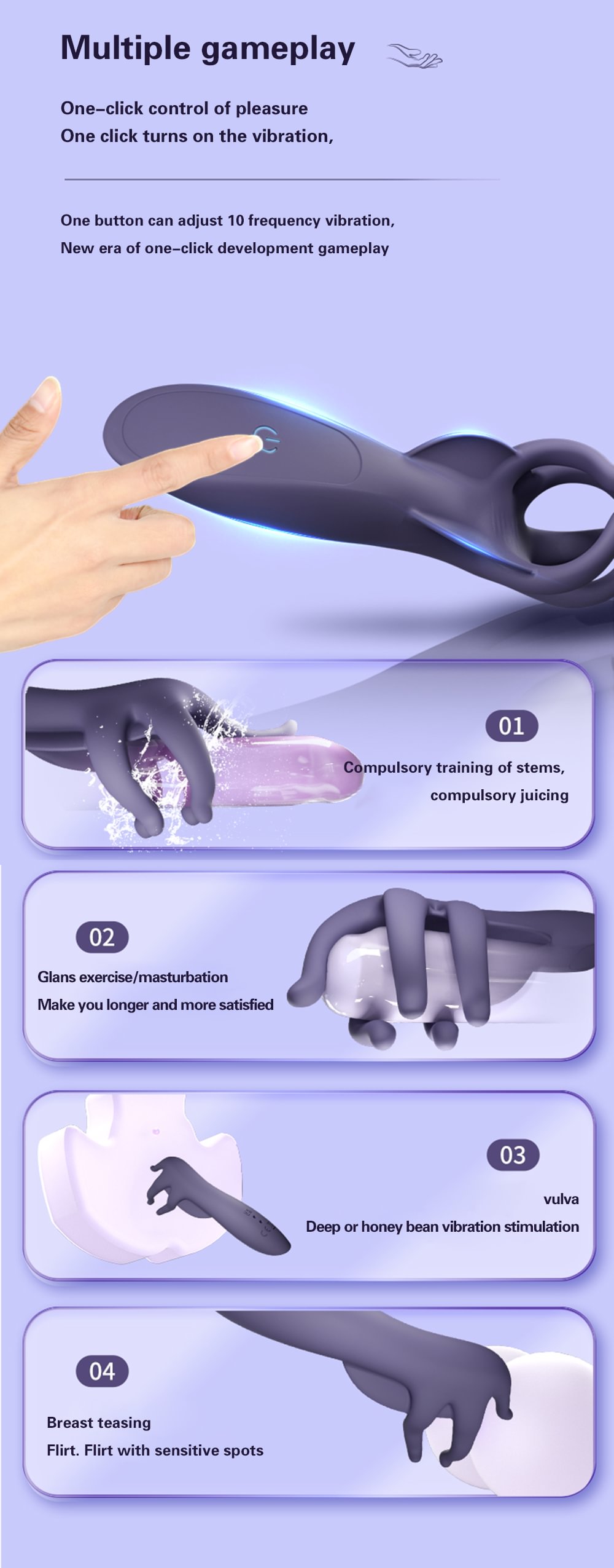 PLUSE VIBRATION – PULSES STIMULATE THE GLANS SENSITIVE NERVES TO ADAPT THEM TO STIMULATION